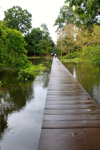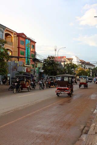 Mit einem Bus, der durchaus westlicher Standard aufwies, fuhren wir von Bangkok nach Siem Reap. Die Organisation war exzellent, ein Angestellter führte die ganze Bande über den Zoll und kontrollierte vorgängig alle notwendigen Dokumente. Kaum hatten wir die Grenze von Thailand nach Kambodscha überquert, befand ich mich in einem leicht desillusioniertem Zustand. Die Lebensverhältnisse schienen katastrophal, bettelnde Kinder, Menschen, die Holzwagen vor sich herzogen, Mofas, die MiniVan Ladungen transportierten usw. Obwohl man solche Bilder des Öfteren schon gesehen hat und ja auch weiss, dass solche Zustände existieren, überkommt einem doch ein mulmiges Gefühl, wenn man es direkt vor Augen geführt bekommt. In Siem Reap sah die Welt dann schon wieder etwas anders aus, da sich die Stadt längst dem Tourismus angepasst hat und ebenfalls davon zu profitieren scheint.