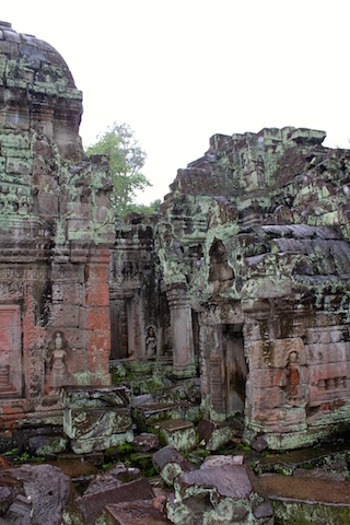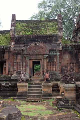 Am ersten Abend kundschafteten wir die Restaurants aus und erledigten einige organisatorische Dinge. Am zweiten Tag mieteten wir sogleich ein Electro Bike, besorgten uns den Pass zu den Tempeln von Angkor, der uns im Vergleich ein halbes Vermögen kostete und starteten unsere erste Tempel Tour zu den Tempeln „Banteay Kdei“, „Sra Srang“, „Ta Phrom“ und „Baphuon“. Die Impressionen waren einmalig, jeder Tempel auf seine Art eindrücklich, nur das Wetter machte während der ganzen Zeit nicht wirklich mit. Wir befinden uns immer noch in der Regensaison, mit dem Oktober als Regenfall-Rekordmonat ;-). Die nächsten zwei Tage verbrachten wir ebenso mit „rumtempeln“, am einen Tag wurden wir aber mittels Tuk-Tuk herumgeführt. Die Tour führte zuerst zu dem wohl bekanntesten aller Tempel „Angkor Wat“, den wir eigentlich bei Sonnenaufgang sehen wollten, was aber wegen bewölktem Himmel nicht gelungen ist und auch die Touristenmasse hätte das idyllische Bild wohl etwas getrügt. Die Weiterfahrt führte uns zu „Angkor Thom“, „Preah Khan“, „Jayatataka“, „East Mebon“ und „Pre Rup“. Am dritten Tag erhofften wir uns eigentlich eine Tempelpause, glaubten aber dann der Wettervorhersage, die Gutes versprach, und mieteten uns erneut ein Motorbike, mit dem wir den über 30km von der Stadt entfernten „Banteay Srei“ und auf dem Rückweg das „Landmine Museum“ besuchten, welches Hintergründe zu immer noch aktiven Minen in Kambodscha und der Welt liefert sowie die Art und Weise erklärt, wie diese deaktiviert werden und wie die Weltpolitik sich mit dem Thema beschäftigt. Die Fahrt stellte sich als abenteuerlich heraus, platzte auf der Hinfahrt wiedermal einen Reifen. Ich bin’s mir mittlerweile ja gewohnt ;-). Glücklicherweise befand sich nur 200m entfernt einen Mechaniker. Dieser ersetzte aber leider nur den Schlauch, obwohl der Reifen dringend ersetzt hätte werden müssen. Das durften wir dann auf der Rückfahrt wieder zu spüren bekommen, da der Riss immer grösser wurde und wir schliesslich mit durchschnittlich 25km/h nach Siem Reap zurück holperten. Am vierten und letzten Tag unseres Siem Reap’s Besuchs versuchten wir die Hintergründe zu all dem Gesehenen zu erfassen und besuchten das National Museum.