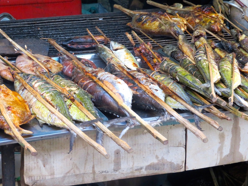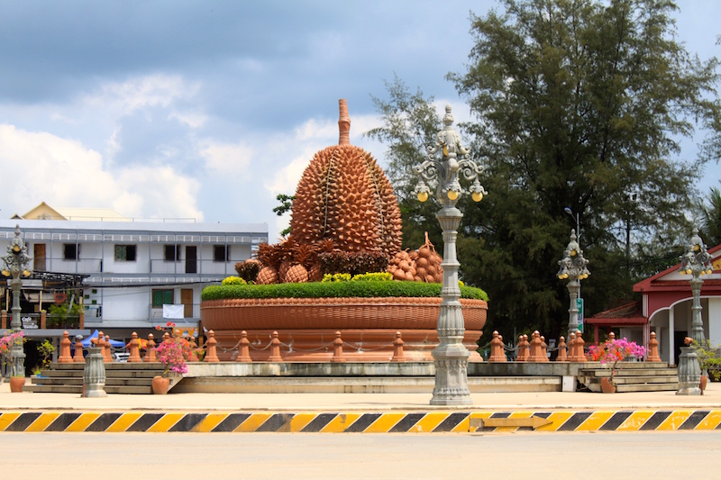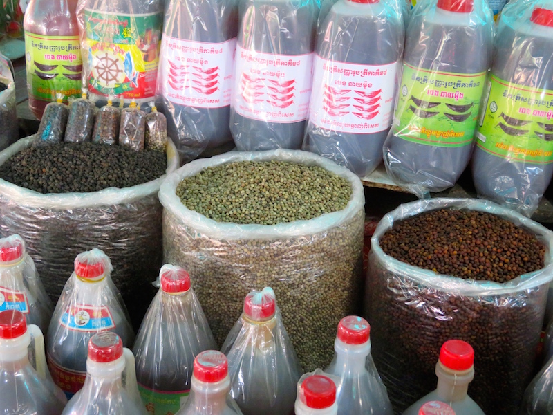 Am darauffolgenden Tag machten wir einen Ausflug nach „Kep“ und in den „Kep National Park“, in dem wir eine 8km lange Wanderung durch den Regenwald machten und wunderbare Aussichten genossen. Zurück in Kep besuchten wir den Fish Market, auf dem buntes Treiben herrschte, die Fischer den Fisch direkt aus dem Meer zogen, kochten und anschliessend in allen möglichen Arten verkauften. Weiter ging’s an einigen Statuen entlang und nordwärts Richtung „Sothy’s Pepper farm“. Wir wurden durch die Pfeffer Plantage geführt und Erklärungen zum einzigartigen „Kampot Pepper“ wurden abgegeben. Der Pfeffer wird ausschliesslich biologisch angebaut, gemäss unserem Tour Guide mit Kuhfladen und Fledermausausscheidungen gedüngt und mit einer Mischung aus drei verschiedenen Pflanzenarten gedüngt. Eine davon ist der „Niembaum“, der früher als Heilmittel gegen Malaria gedient hatte. Vier verschiedene Endprodukte werden unterschieden: Grüner, frischer Pfeffer, der nur zehn Tage haltbar ist, ausser man misch in mit Salz, roter, weisser und schwarzer Pfeffer. Es gibt grundsätzlich aber zwei verschiedene Pfefferarten: der grüne und der rote Pfeffer. Von einem Pfefferbund sind nur ca. 20% rot, der Rest ist grün. Wird der grüne Pfeffer getrocknet, entsteht daraus schwarzer Pfeffer. Wird der rote Pfeffer, der eher eine süssliche Note hat, geschält, entsteht weisser Pfeffer. Die Produkte werden hauptsächlich nach Europa, USA und Japan exportiert, wo sie häufig auf den Tellern in Gault Millau Restaurants landen.