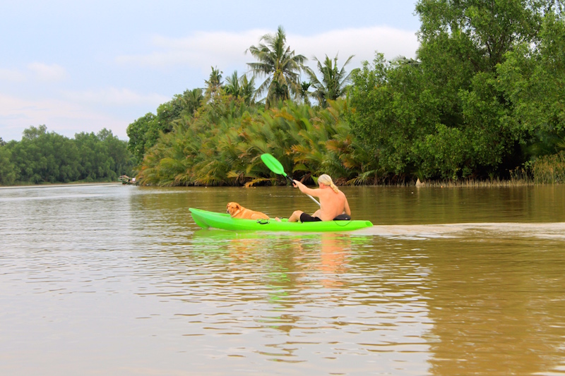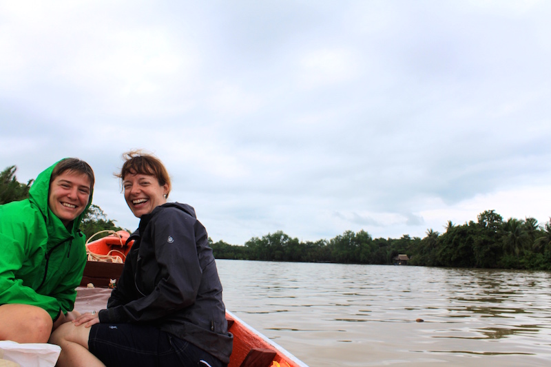 Am dritten und letzten Tag auf zwei Rädern besuchten wir eine weitere Pfefferplantage „La Platation“, auf der nicht nur Kampot Pfeffer, sondern auch lange Pfefferschoten und Kurkuma angebaut wird. Die Führung und Informationen waren erneut sehr interessant und lehrreich. Um drei Uhr nachmittags wurden wir dann von „Bart the Boatman“ in Kampot abgeholt und auf dem „Preaek Tuek Chhu River“ während drei Stunden herum chauffiert. Das war ein unglaublich tolles Erlebnis, konnte er mit seinem kleinen Gefährt winzige, von Palmen umgebene Nebenflüsschen ansteuern, die mit den normalen „Sunset Cruises“ nicht zugänglich gewesen wären.