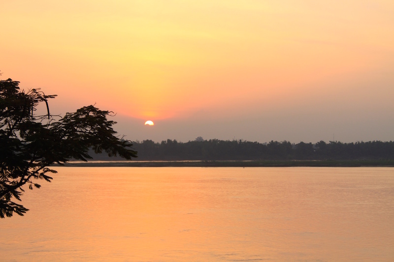 Geschafft fuhren wir anschliessend den Weg nach Kampot zurück, um am Flussufer den Sonnenuntergang zu beobachten resp. den Untergang verpassten wir, aber schön war es trotzdem ;-).
